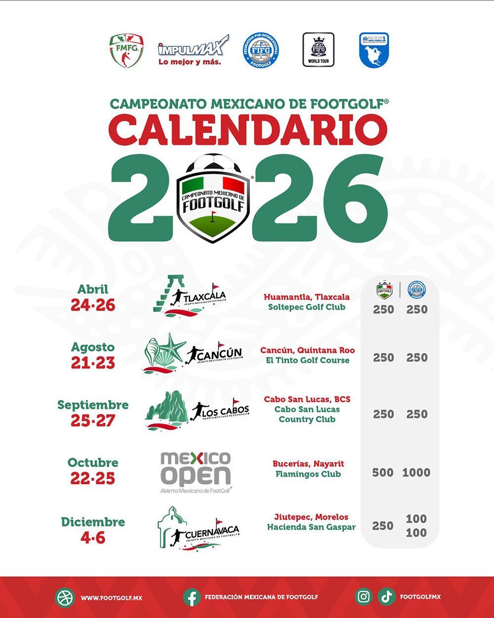 El calendario del Campeonato Mexicano de FootGolf 2026 es una realidad 🤩⛳⚽